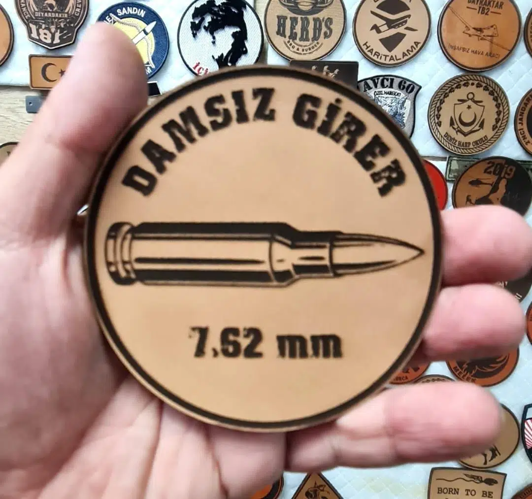| Etiketler | Damsız Girer 7,62 mm -Yuvarlak Deri Peç - Arma - Leather Patch |